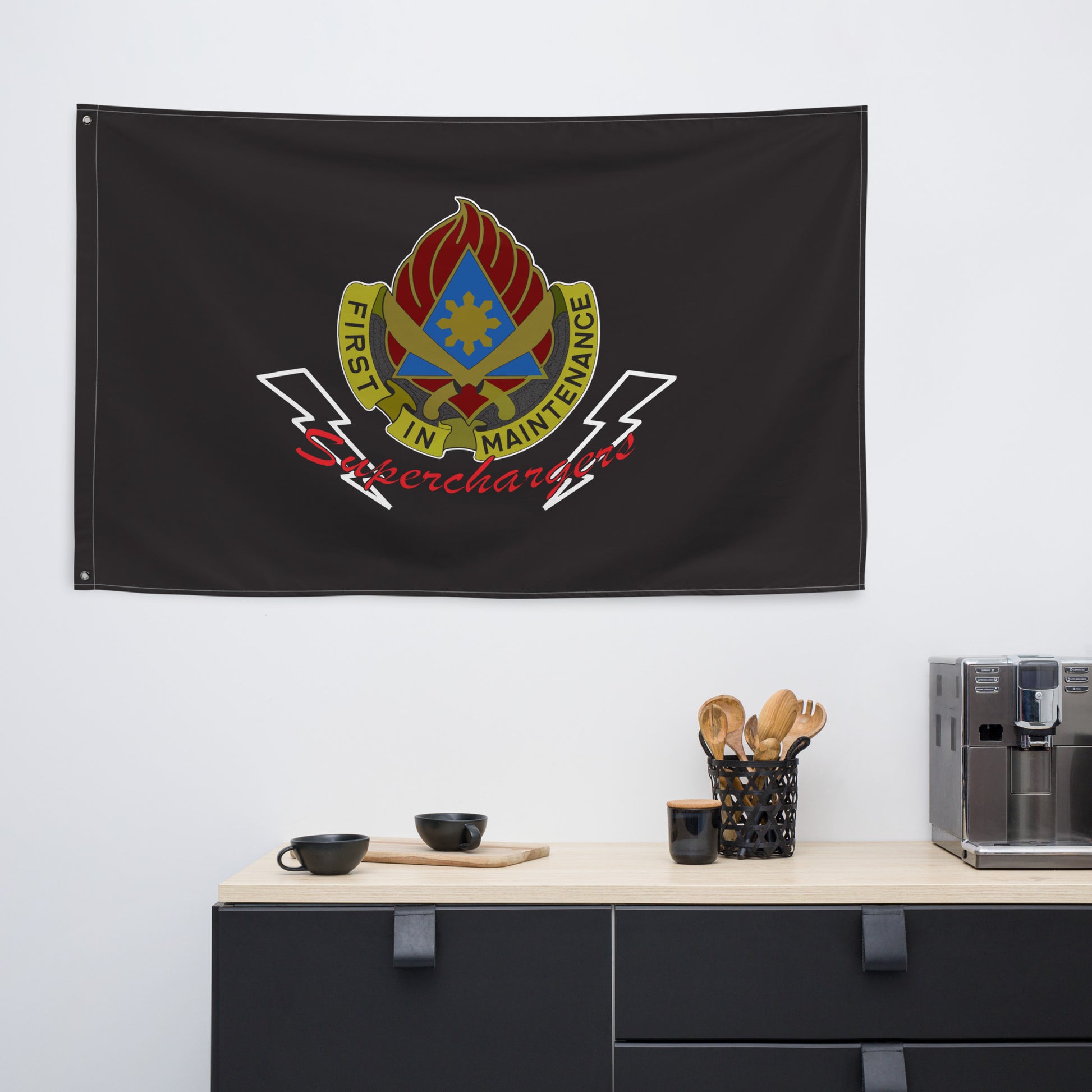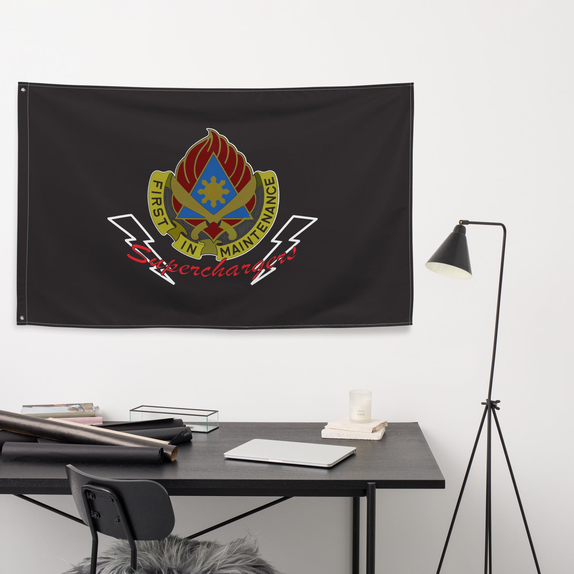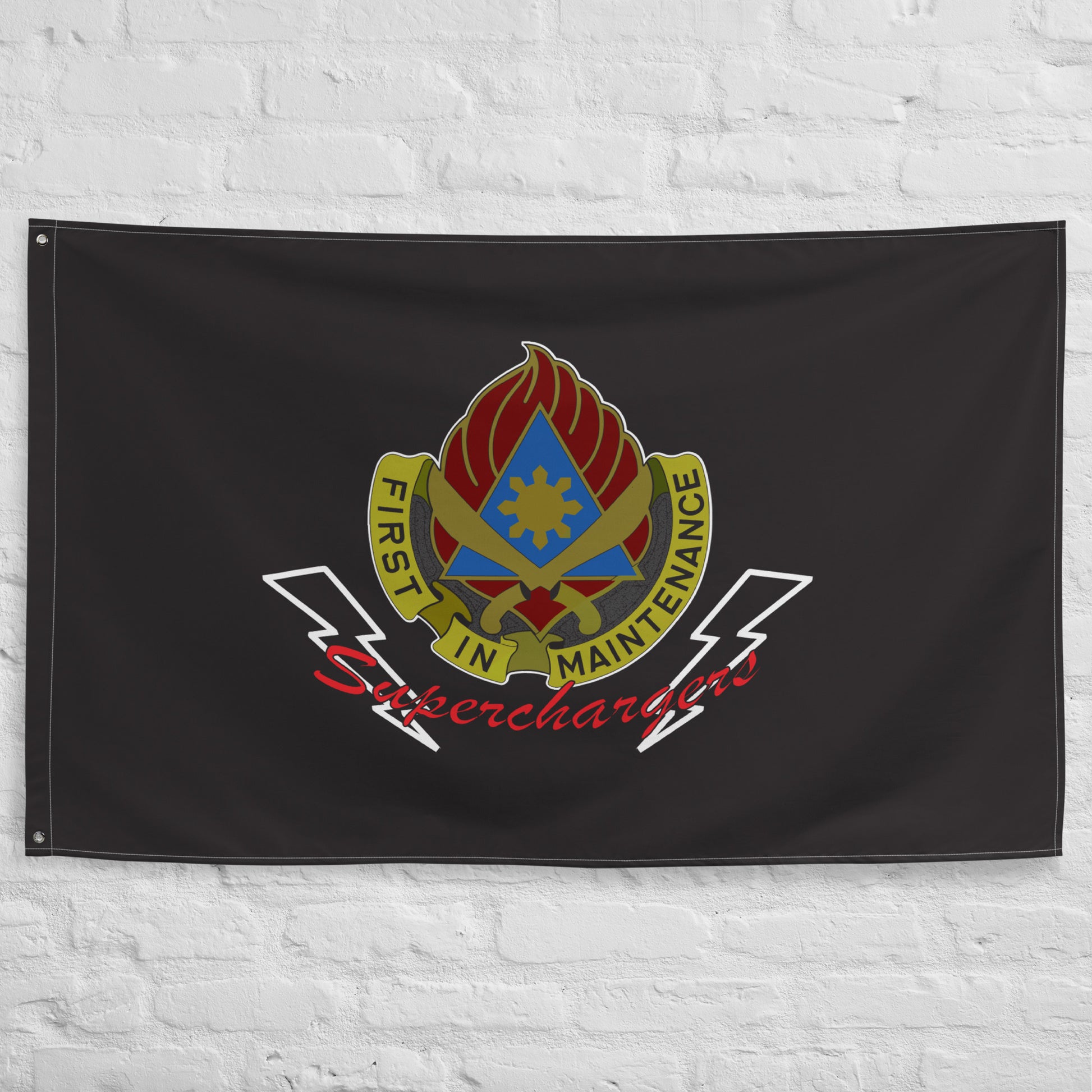 Rep your background with this 189th Division Sustainment Support Battalion Flag. Perfect to hang in your home or office. Your 34" x 56" flag won’t crease or shrink thanks to the polyester material and will last a long time. Superchargers!